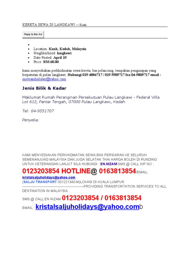 Homestay, hotel di langkawi yang bersih dan selesa. Langkawi merupakan destinasi pelangcongan yang tidak asing lagi di malaysia. Juga menyediakan pakej termasuk kenderaan. Pihak kami juga menyediakan berbagai jenis kereta sewa untuk anda semua di pulau langkawi. Pakej kereta sewa di langkawi.